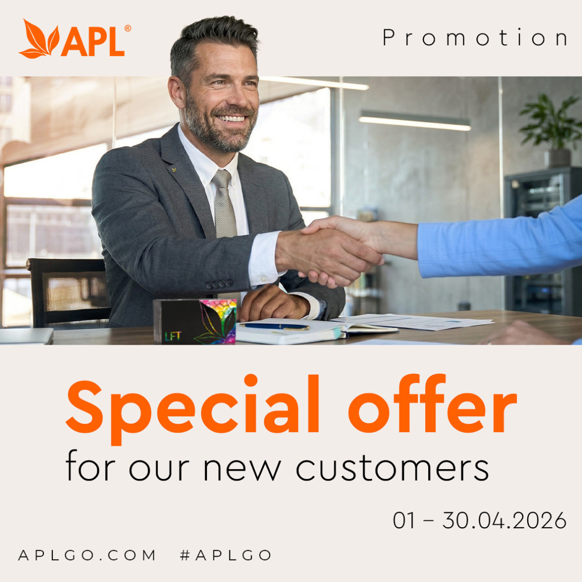 *The cancellation of the 25 c. u. fee for activating a personal account on backoffice.aplgo.com applies when registering on the website from April 1, 2026, to April 30, 2026, and placing your first order.